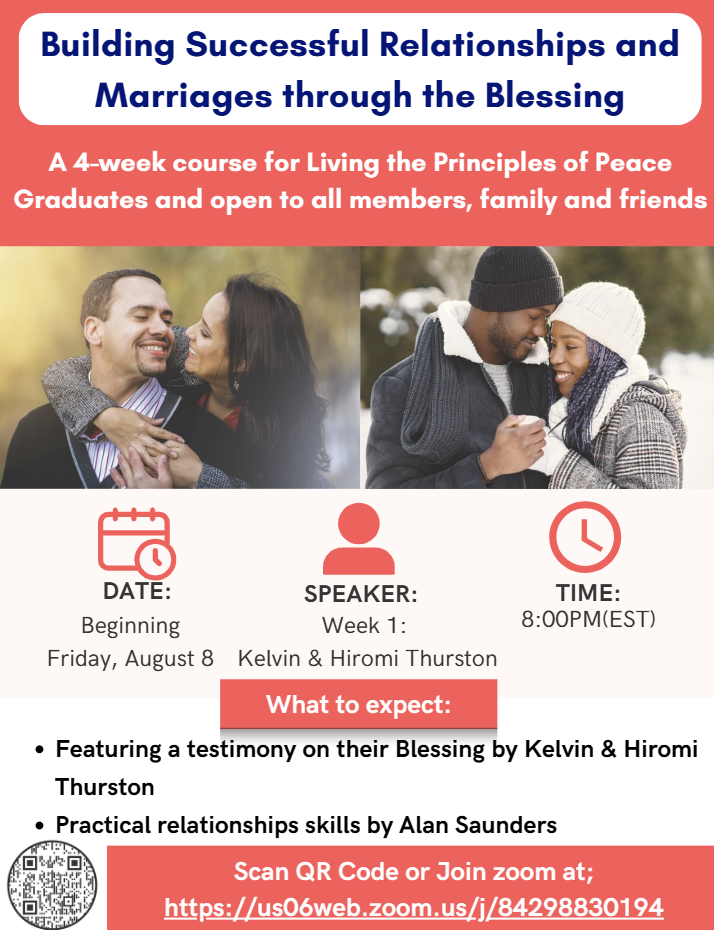For whom: This is the next step for Living the Principles of Peace Graduates and is open to all members, family and friends.