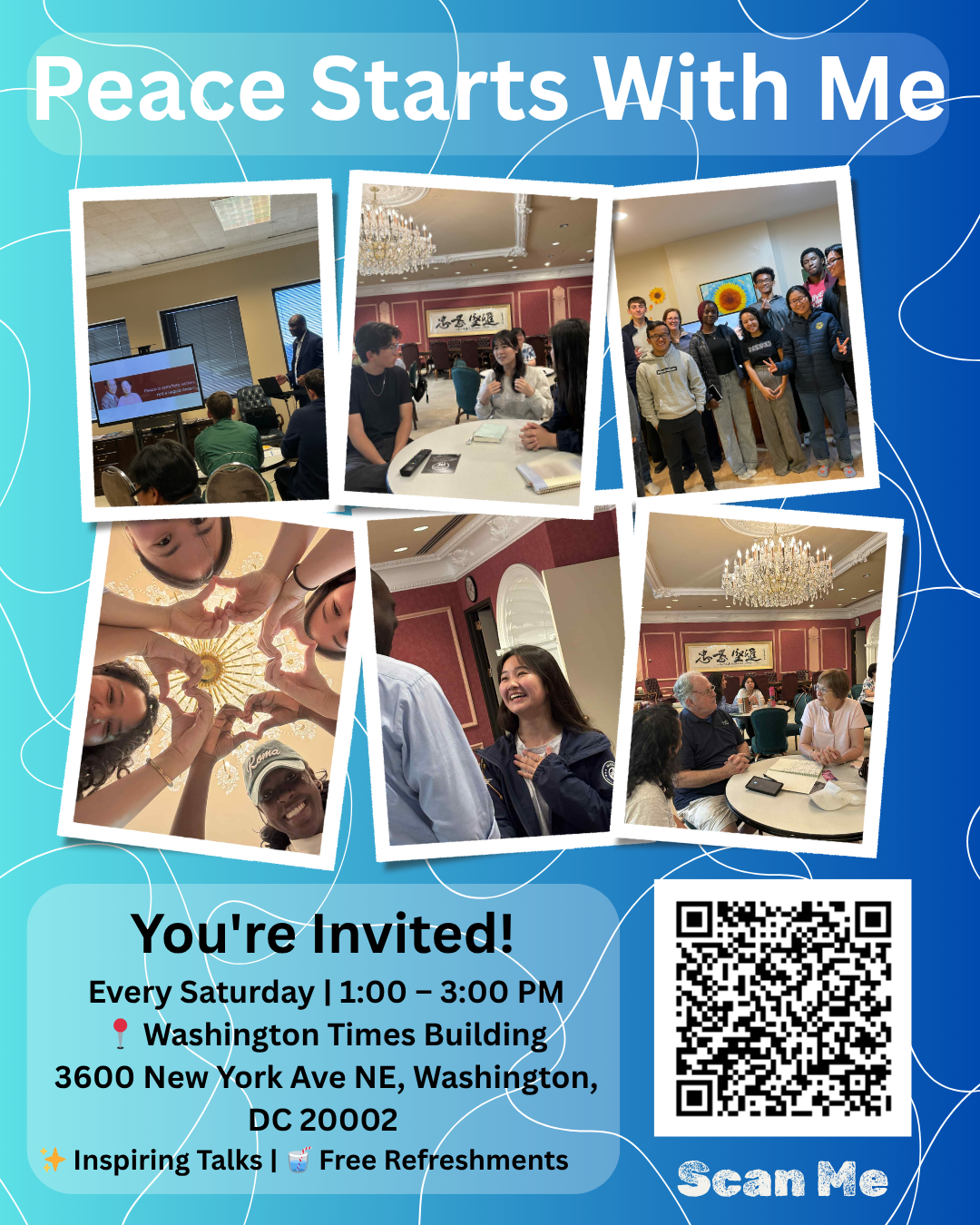 The Washington Times 3600 New York Ave. NE, Washington, DC, United StatesInvite your friends, guests and family members to join our new Peace Starts With ME Introductory Seminar