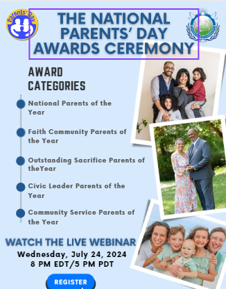 The Universal Peace Federation is pleased to announce that the Parents of the Year Selection Committee has named the Parents of the Year 2024, along with 4 other special categories; Faith Community Parents of the Year; Civic Leadership Parents of the Year; Outstanding Sacrifice Parents of the Year; Community Service Parents of the Year.